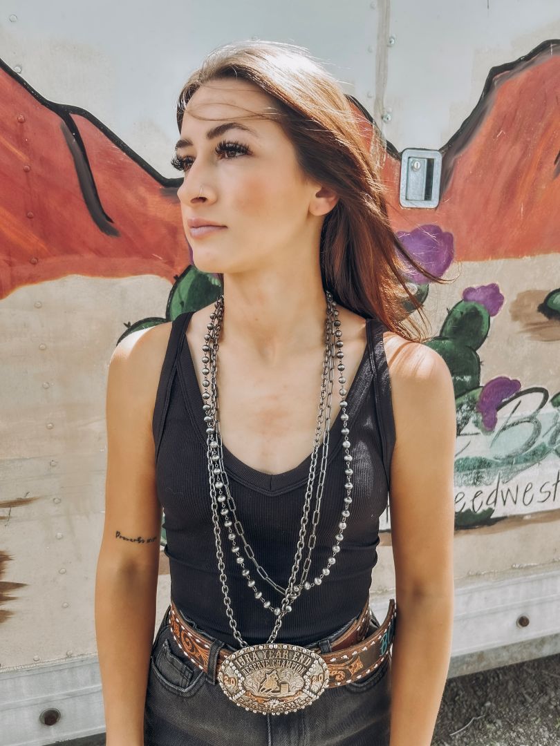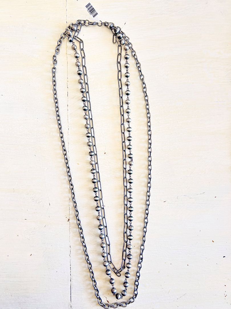 Unique blend of chains and beads. This eye-catching piece effortlessly with an edgy feel, making it the perfect addition to any outfit, whether you're dressing up for a night out or adding flair to your everyday look. Stand out in any crowd, don’t miss the chance to express your individuality—add this versatile necklace to your collection today!