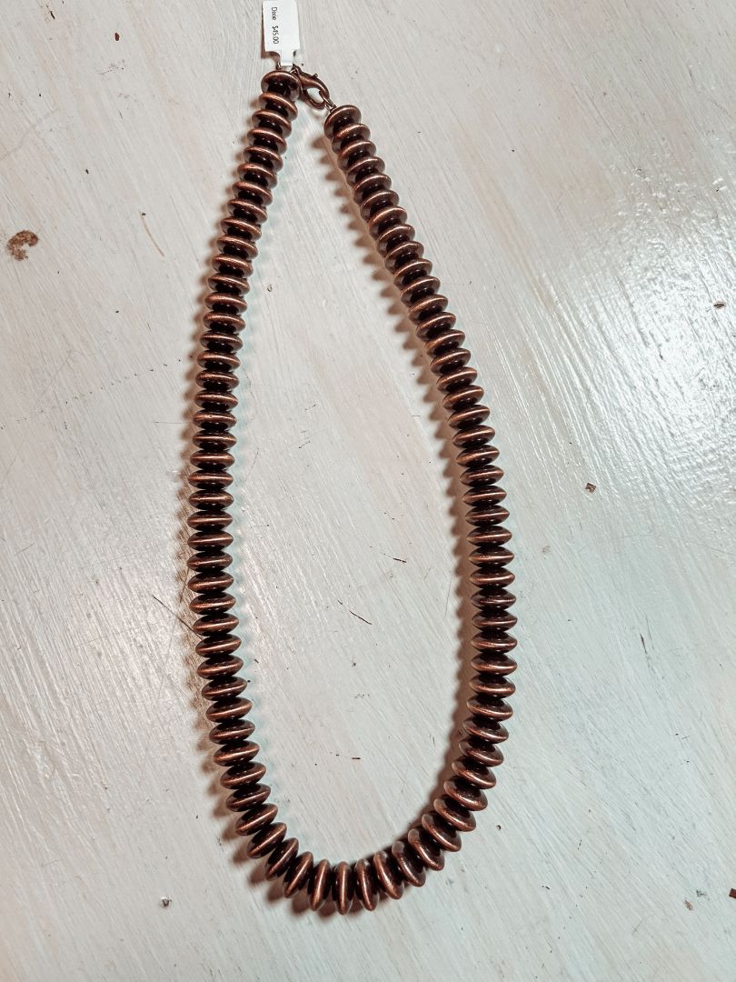 Stunning 22-inch copper faux Navajo pearl beaded necklace. This exquisite piece combines the rustic charm of copper with the timeless elegance of Navajo-inspired design, making it a versatile addition to any outfit. Perfect for layering or wearing solo, its lightweight feel ensures all-day comfort while the unique bead texture adds a touch of sophistication. Treat yourself or gift it to someone special—this necklace is sure to become a cherished favorite!
