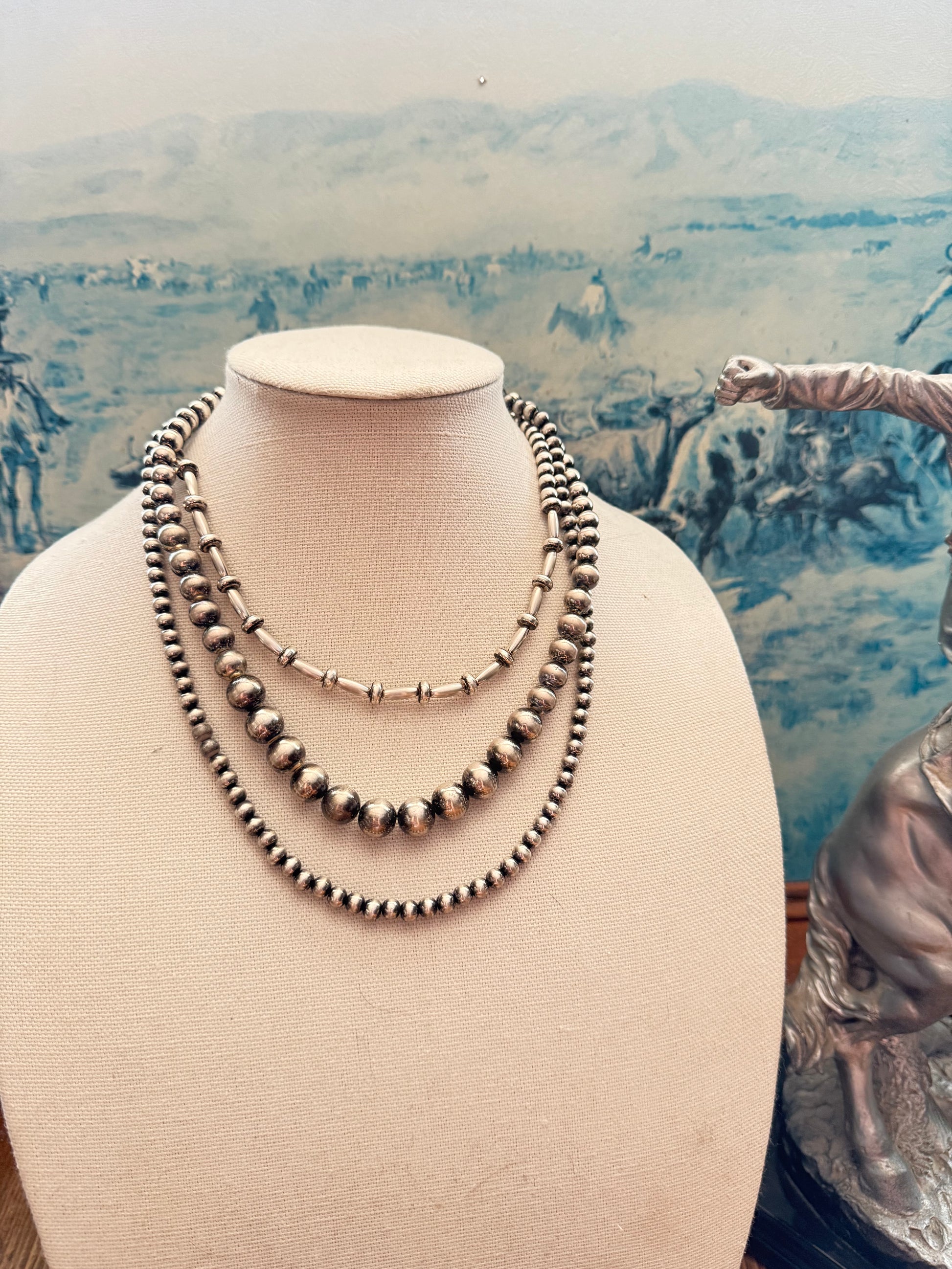 Add a playful twist to your style with Jesy, the Western faux Navajo Multi Strand Pearl Necklace. Featuring layers of shimmering faux pearls, this necklace brings a fun yet sophisticated vibe to any outfit. Perfect for those who love mixing elegance with a bit of flair, Jesy is your new go-to for effortless charm and standout sparkle.