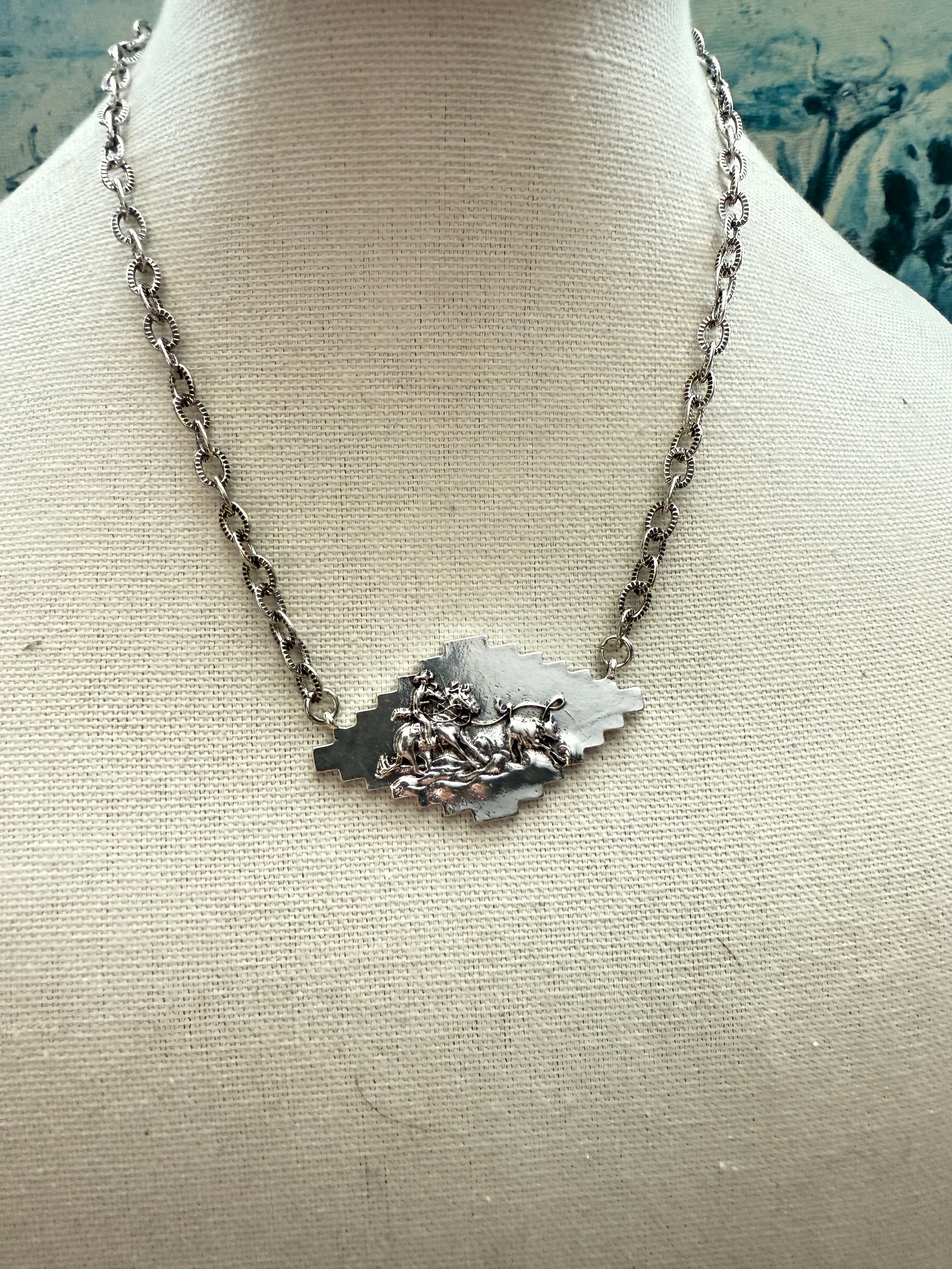 Add a playful twist to your look with the Karley necklace, featuring a charming Aztec-inspired calf roper charm. This cute accessory brings a fun, southwestern flair that’s perfect for brightening up any outfit with a touch of whimsy.
