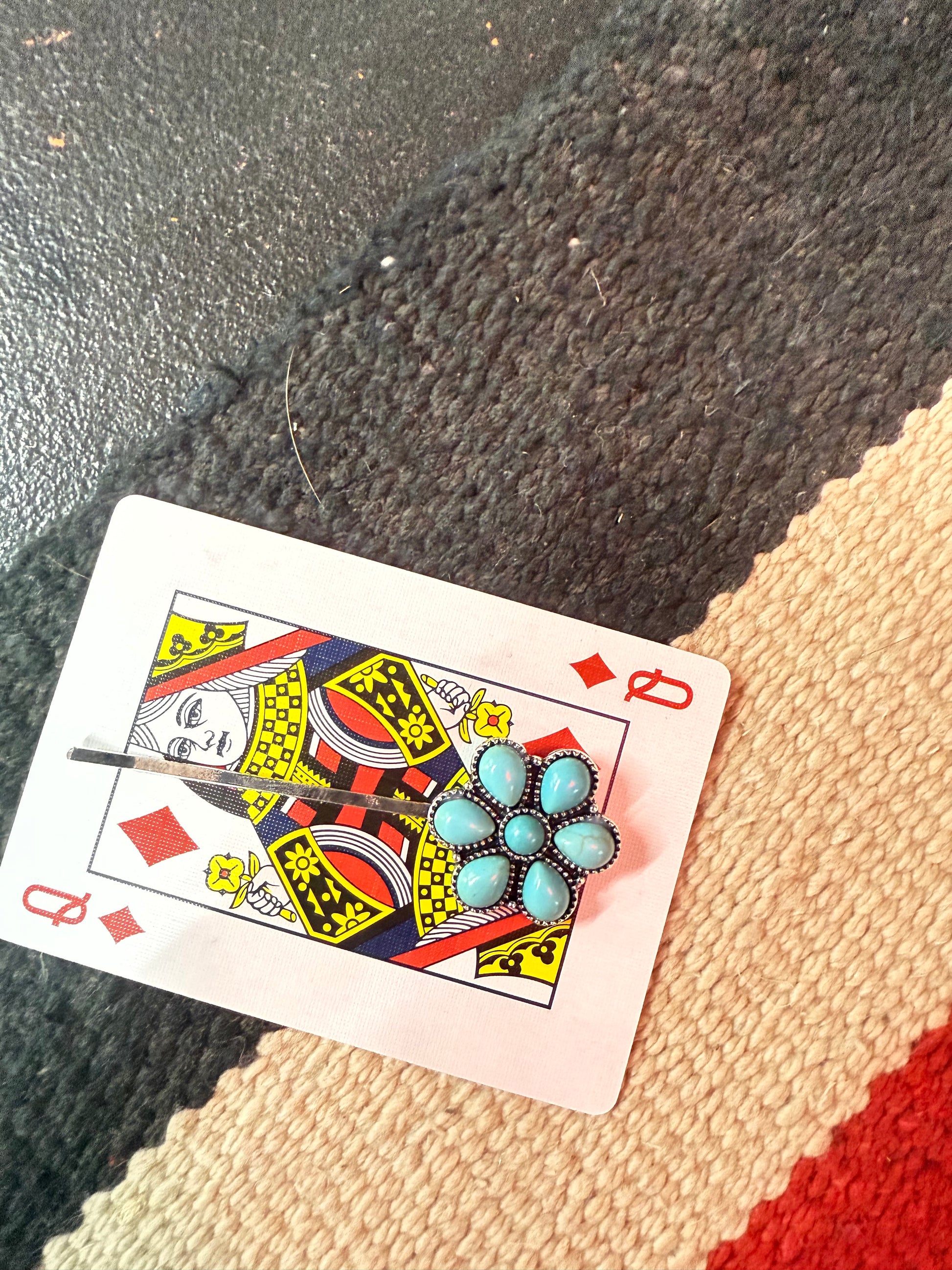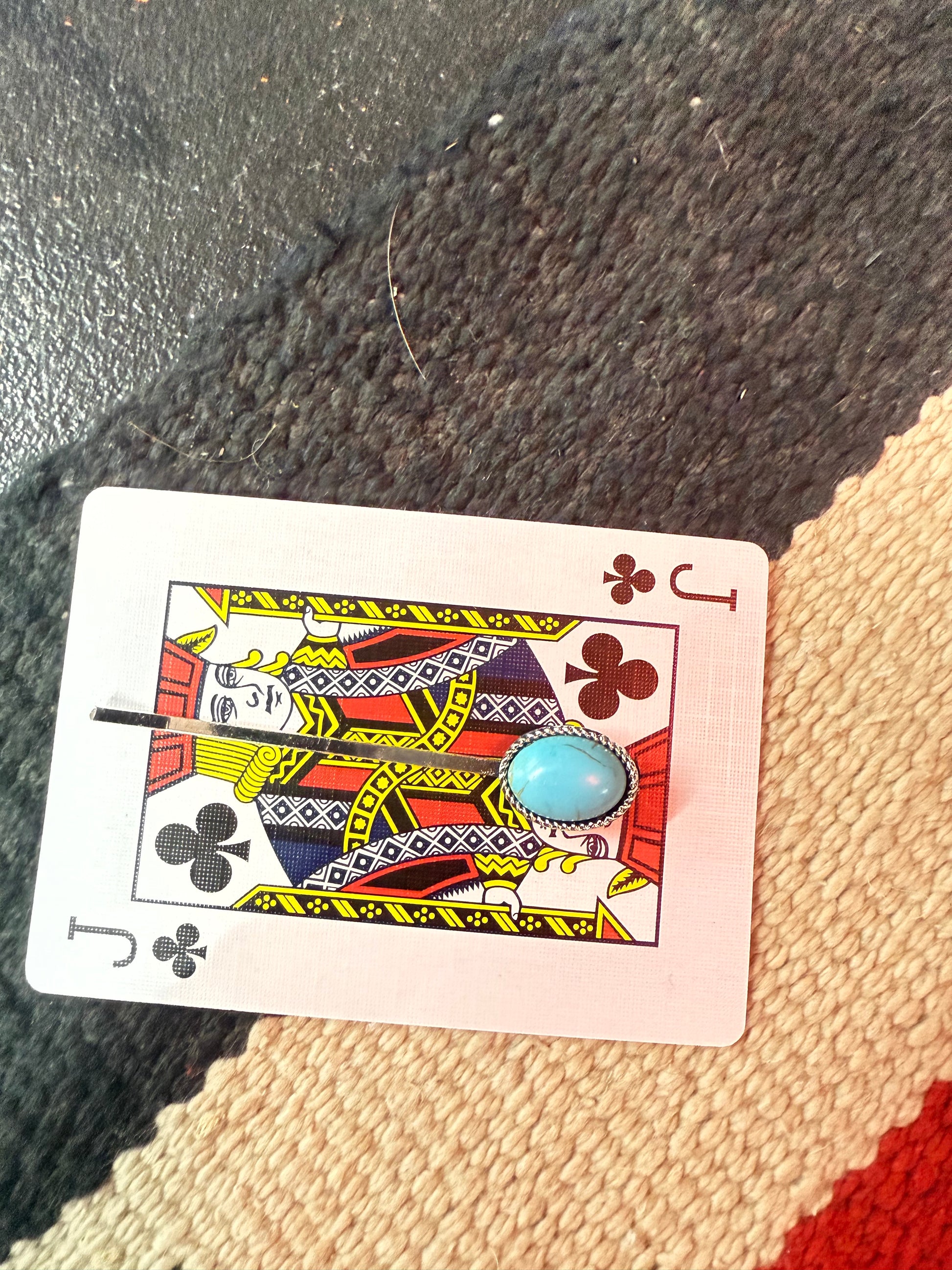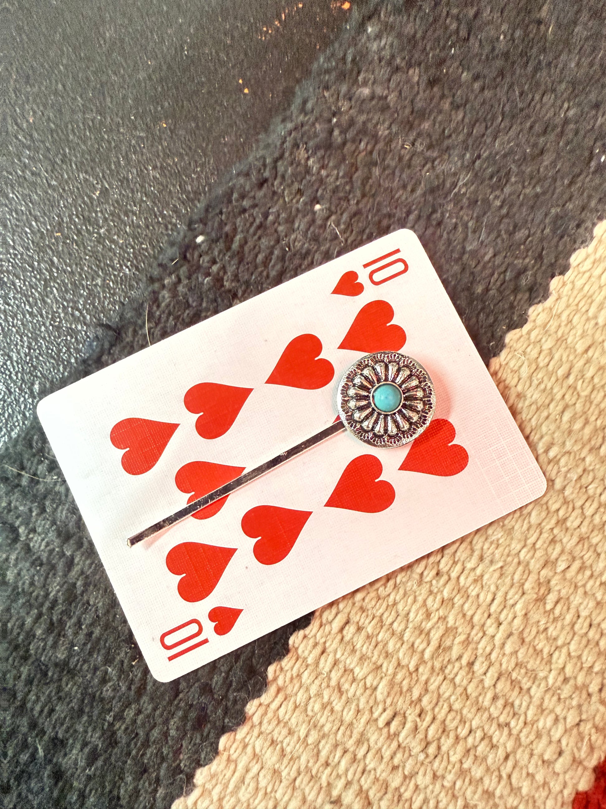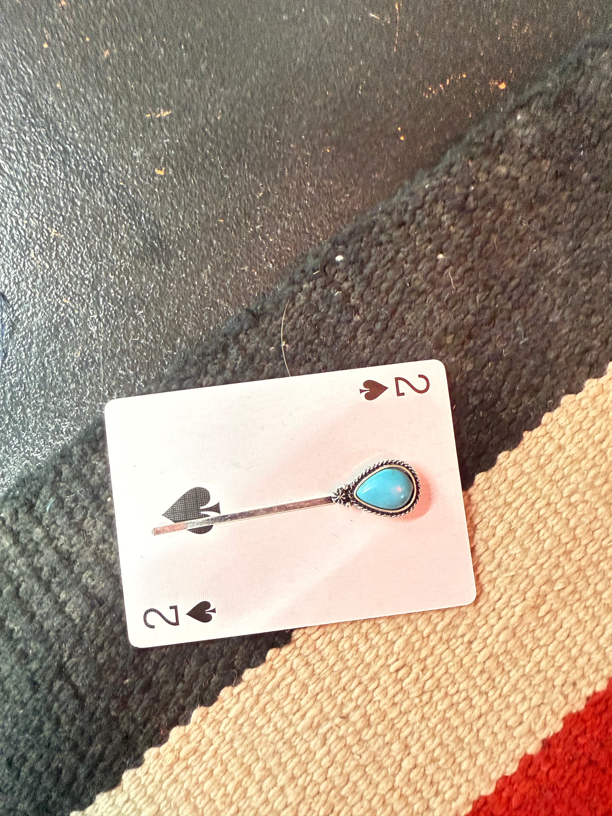 Add a touch of timeless Western charm to your look with this vintage-inspired turquoise hairpin. Designed with classic Southwestern flair, this piece blends rustic silver tones with a bold turquoise stone centerpiece for that perfect cowgirl finish. Whether you’re dressing up for a rodeo night, styling your hair for everyday wear, or adding the final touch to a special outfit, this hairpin is both functional and fashionable. Lightweight yet sturdy, it keeps your hair in place while making a statement.