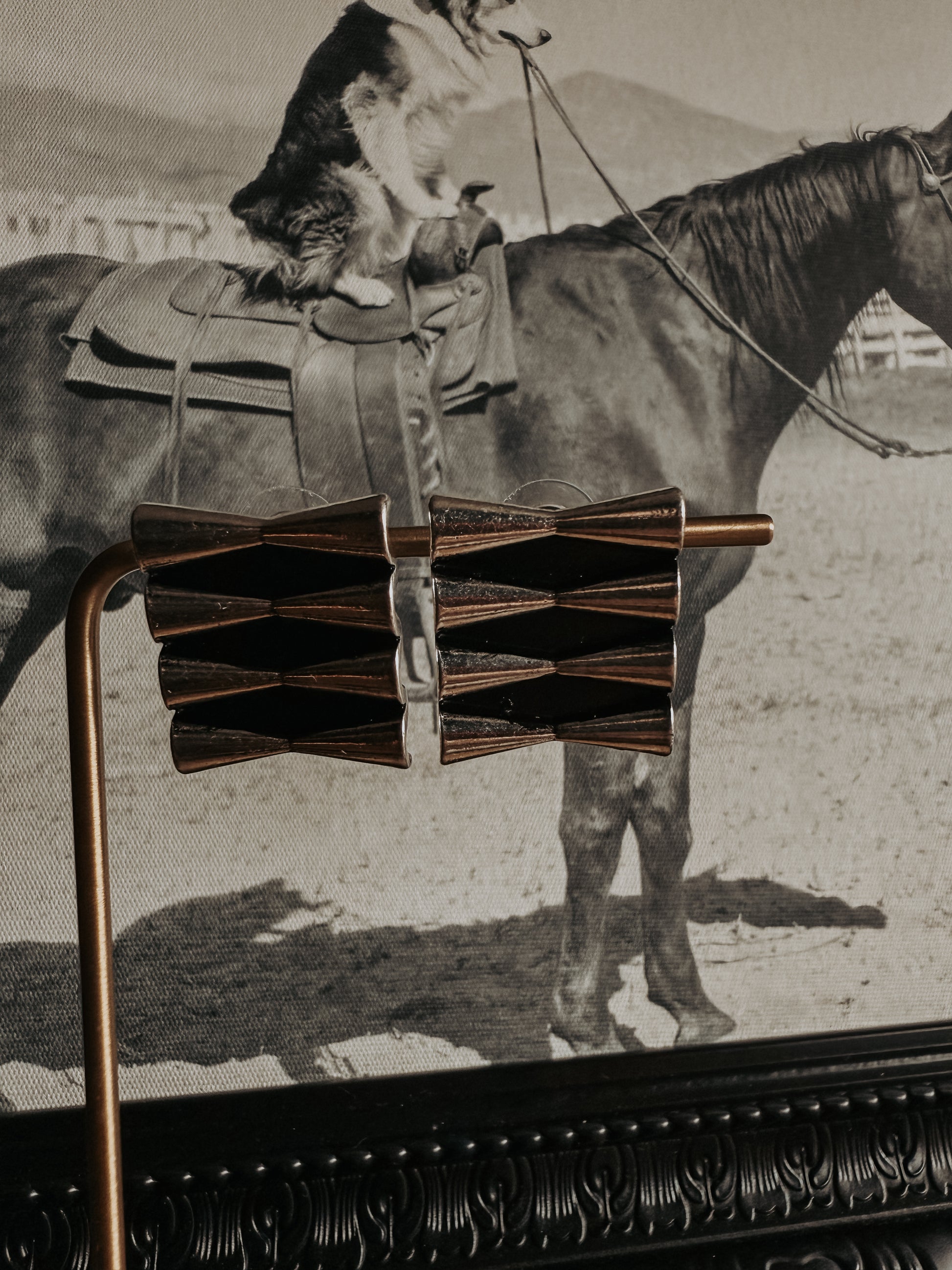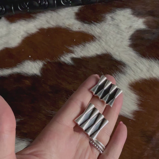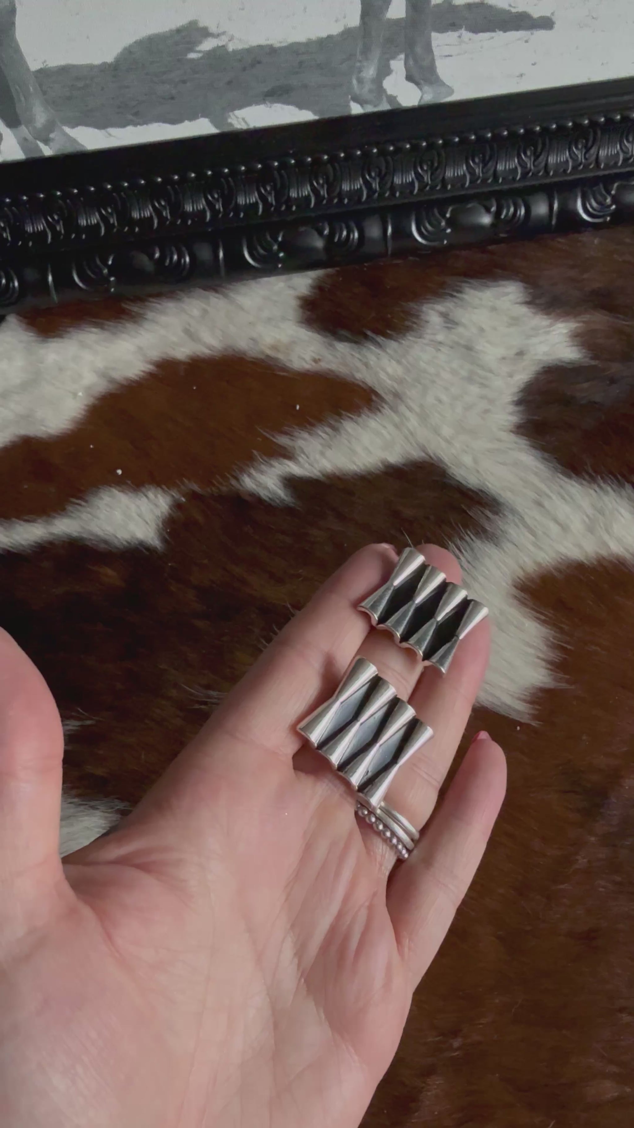Channel bold Southwestern spirit with the Desert Guardian Aztec Earrings. These striking earrings feature a geometric shield silhouette intricately etched with Aztec-inspired patterns that symbolize strength, heritage, and ancestral protection. Set in oxidized silver-tone metal, the detailed craftsmanship is beautifully highlighted by the darkened finish, giving each piece rich texture and timeless desert mystique.