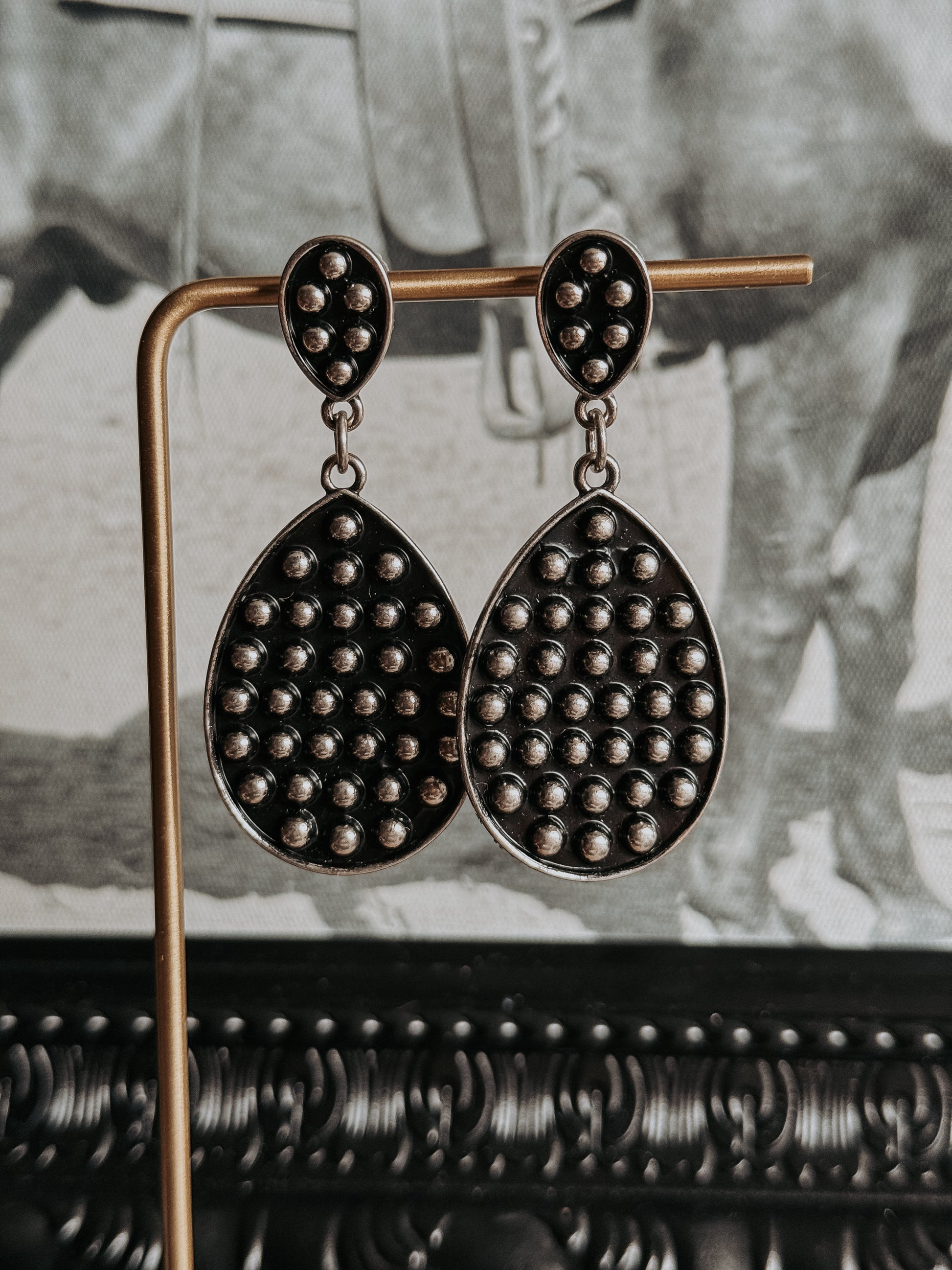 Elevate your western style with the bold elegance of the Midnight Prairie Teardrop Earrings. Designed with a standout bubble-textured finish and classic teardrop silhouette, these earrings bring a modern twist to timeless western fashion. The dimensional design adds just the right amount of statement while remaining lightweight and comfortable for all-day wear.