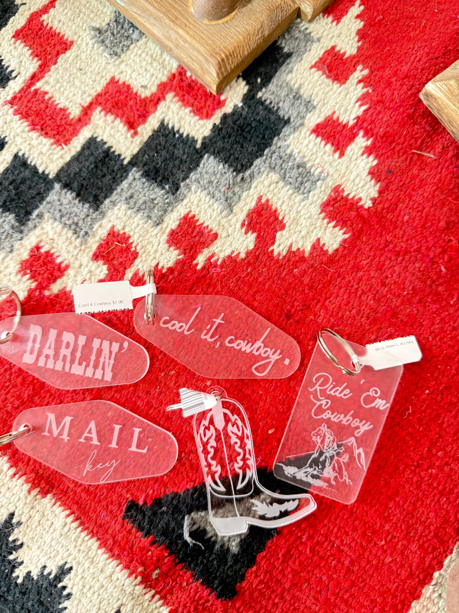 Add a touch of western charm to your keys with these playful acrylic etched keychains. Featuring crisp, detailed designs inspired by the wild west, they’re perfect for cowboys, cowgirls, and anyone who loves a bit of rustic fun. Lightweight and durable, these keychains make everyday carry a little more adventurous. Saddle up and keep your keys stylishly secure!